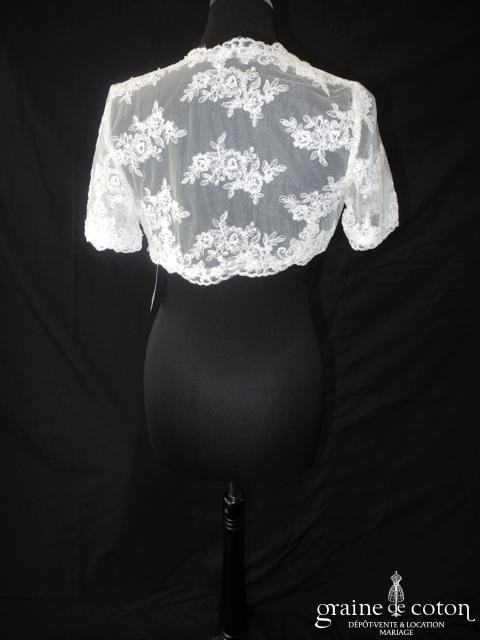 Bianco Evento – Boléro en dentelle ivoire, manches courtes
