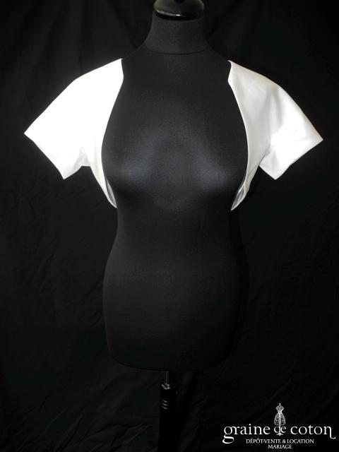 Boléro en satin ivoire à manches courtes.