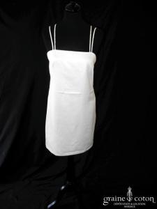 Robe courte une pièce en satin ivoire : bustier avec fines bretelles doubles, jupe au genou. Idéale pour une cérémonie civile.