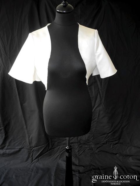 Boléro en satin ivoire, manches courtes. Idéalement assorti à la robe référence 3012.