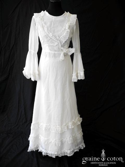 Création vintage 70’s – Robe en mousseline fluide avec manches et applications de dentelle