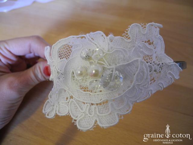 Serre-tête / headband avec guipure de dentelle ivoire.