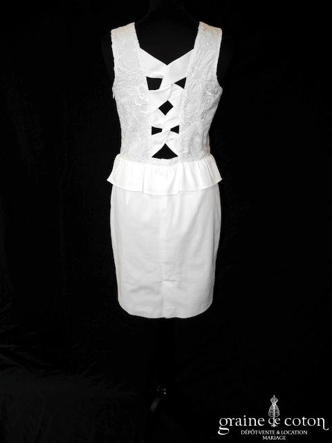Cyrillus – Robe courte en dentelle et piqué de coton ivoire