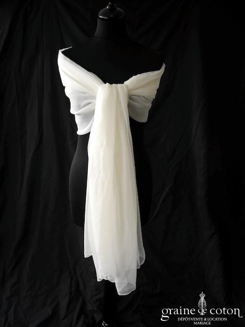 Étole fluide en mousseline de soie ivoire. Dimensions : 220*140 cm