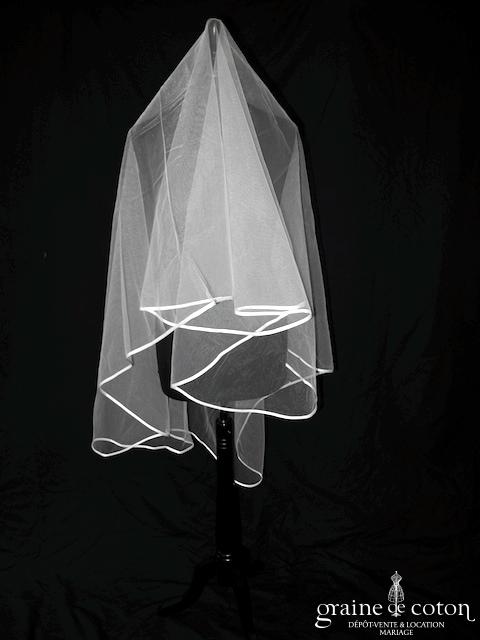 Pronuptia – Voile mi long en tulle blanc bordé d’un biais de satin