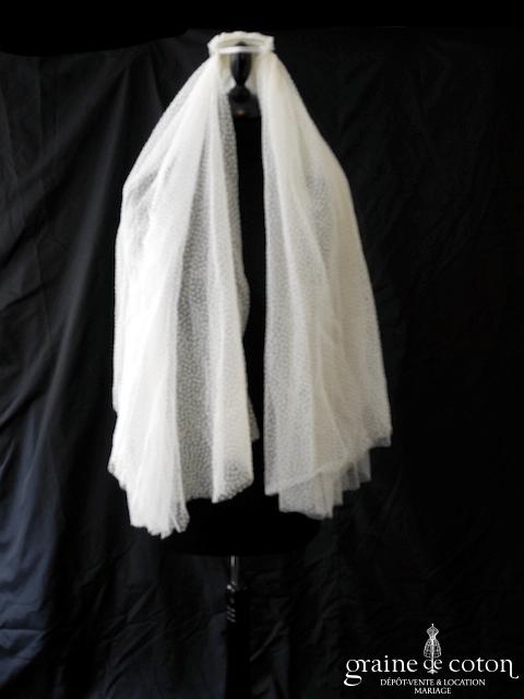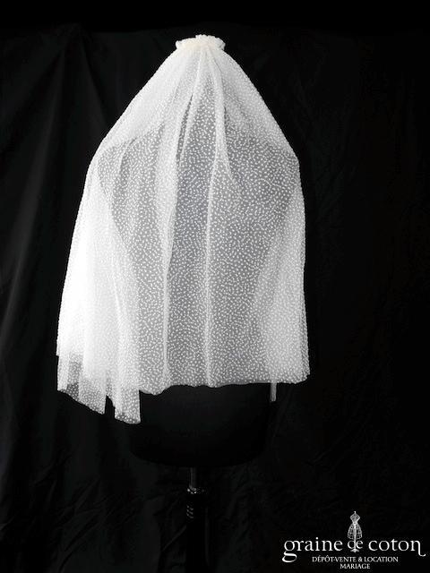 Voile court en tulle plumetis ivoire. Monté sur peigne, avec rabat avant. Original.