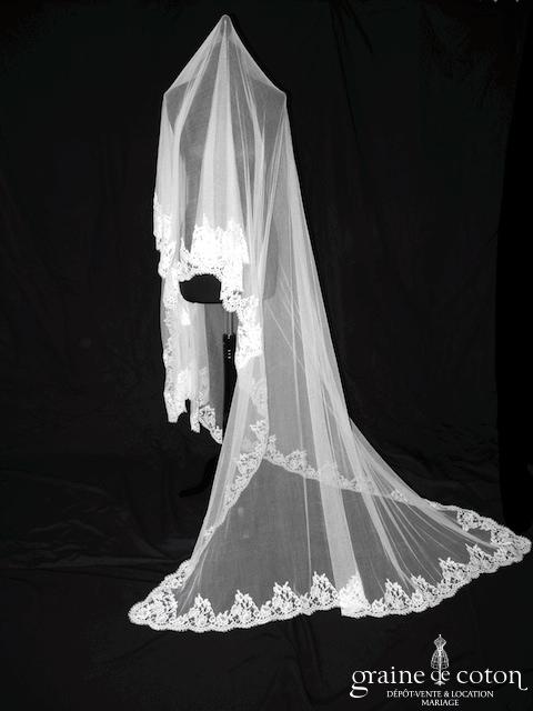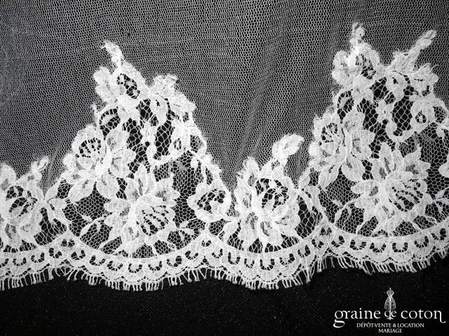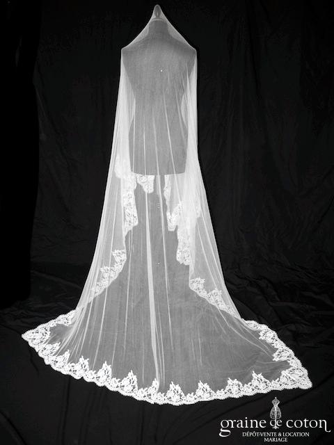 Delphine Manivet – Voile long de 2,50 mètres en tulle de soie ivoire bordé de dentelle