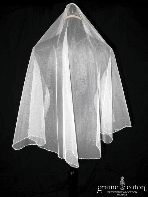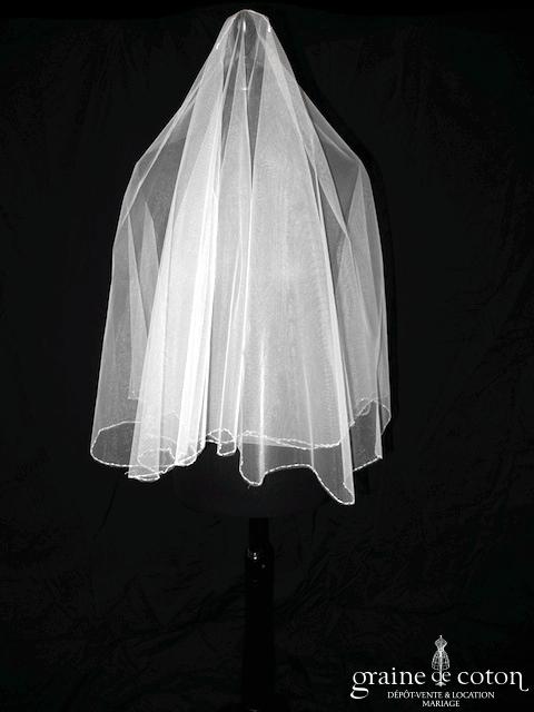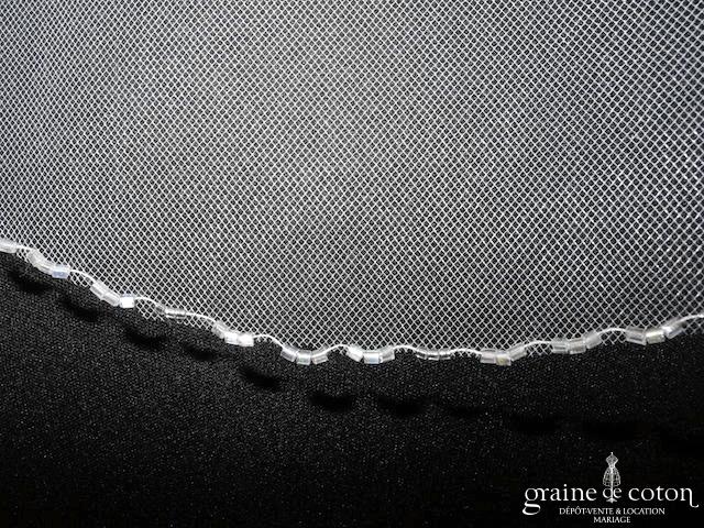 Voile court en tulle ivoire bordé de perles, avec rabat avant. Non monté sur peigne, à fixer avec des pics à chignons.