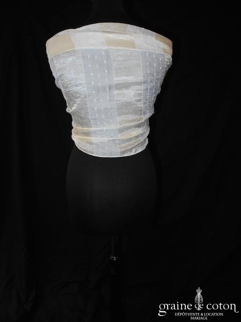 Étole en voile ivoire clair et foncé. Dimensions : 60 * 180 cm.