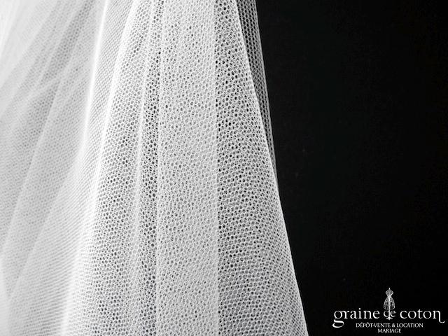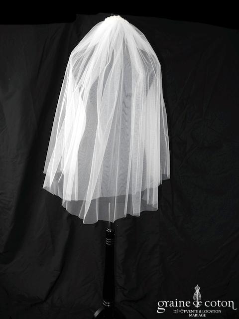 Voile court en tulle ivoire brut, monté sur peigne et avec rabat avant.