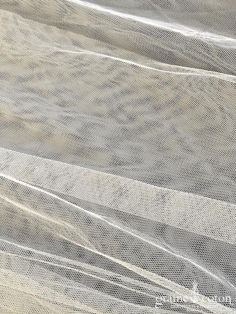 Voile long de 3 mètres en tulle fluide ivoire clair. Monté sur peigne, sans rabat avant.