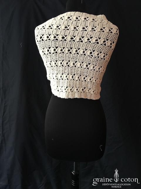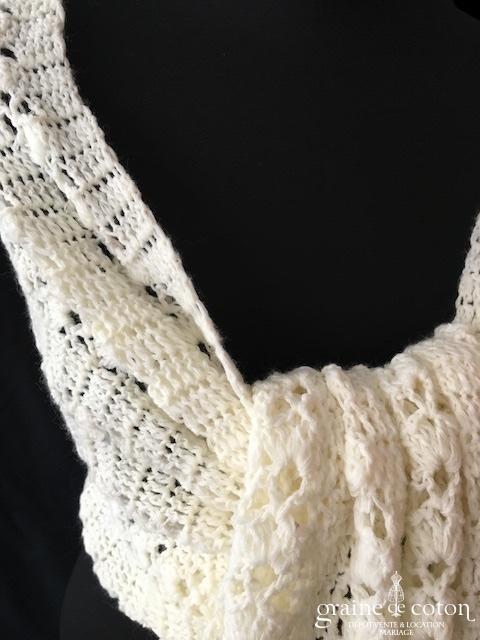 Écharpe / étole / cape en laine ivoire avec franges. Chaude et vintage, tricotée par une déposante ;o)