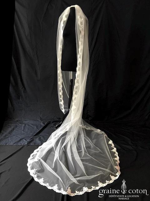 Création – Voile long de 2,80 mètres en tulle ivoire bordé de dentelle perlée