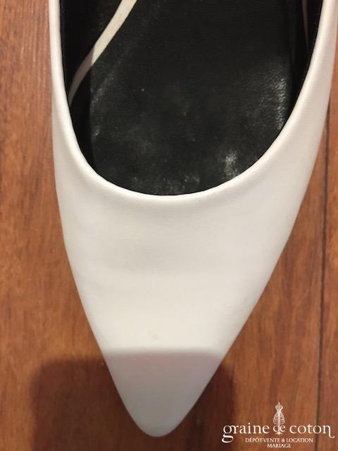 Escarpins pointus blancs mat, petit talon de 4 cm.