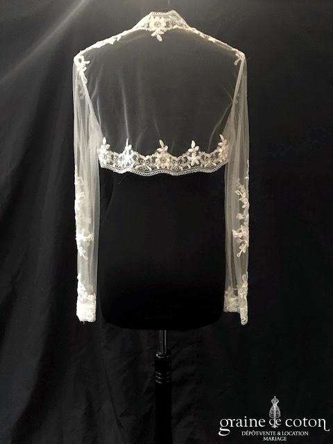 Boléro en tulle bordé dentelle, manches longues, ouvert sur le devant.
