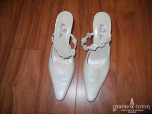 Dépôt d’une création empire en organza de soie de Linéa Raffaëlli, raffinée et pure, beau tombé. Taille 38, référence 3945. Mitaines assorties référence 3946.