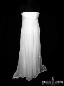 – la création « Alexandre » de Delphine Manivet, coupe empire fluide en mousseline de soie et dentelle, style épuré bohème. Taille 36-38, référence 4012.