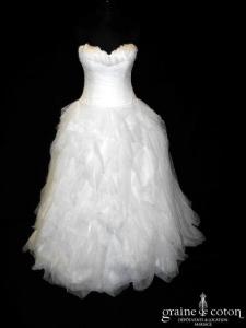 – le modèle « Begonia » en plumes, dentelle et organza, recherché et somptueux. Taille 38, référence 4044.