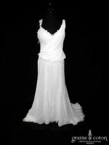 – la création « Unza » en mousseline et dentelle, esprit bohème chic, lumineuse et moderne. Taille 34-36, référence 4052.