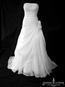 Dépôt d’une création drapée de Veronika Kristoofer, en organza fluide ivoire, très belle tenue. Découpe sobre, mouvement pur. Taille 38, référence 4153.