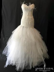 – le modèle féérique et éclatant de la collection « Ici et là » de Max Chaoul, sirène avec mouchoirs de tulle pailletés. Taille 38, référence 4424.