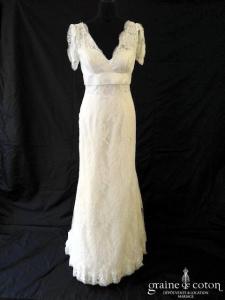 – le modèle « Hidaya » de Cymbeline, robe fourreau tout en dentelle fluide avec petites manches, bohème chic. Taille 38-40, référence 4671.