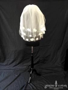 Pour les accessoirées, voile court en tulle et dentelle ivoire : référence 4674.
