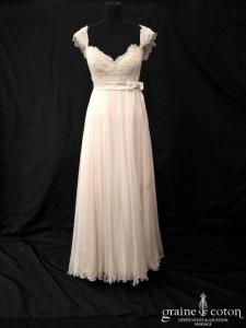 – une création de Piotr Miklas, en dentelle de Calais et mousseline de soie fluide, très belles matières. Coupe empire, larges bretelles. Taille 36-38, référence 4838.