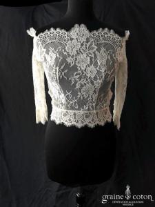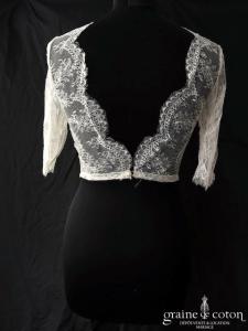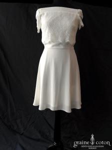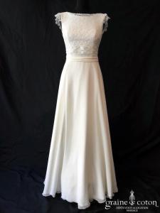 – la robe « Alabama » de Lambert Création pour Juste un baiser, en mousseline fluide et top amovible en dentelle, élégante et sobre. Taille 38, référence 5568.
