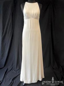 – un modèle encolure américaine de Vanessa Cocchiaro, sobre et très élégant, en crêpe de soie ivoire. Taille 36, référence 6032.