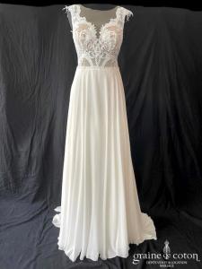 – la robe « Elysée » d’Elsa Gary en mousseline et guipure, encolure ronde pour un modèle doux et seyant. Taille 36-38, référence 6071.