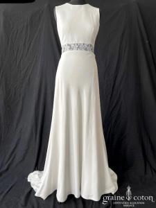 – le modèle 6057 de Jesus Peiro en crêpe de soie et dentelle : sobre, épuré et chic. Taille 38, référence 6068.