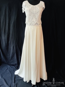 – l’ensemble jupe fendue « Futur » en crêpe et top dentelle « Singulière » d’Elsa Gary : bohème champêtre tout en élégance ;o) Taille 36, référence 6180.
