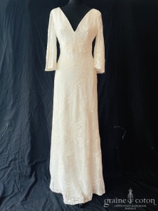 – le modèle « Abba » de Lorafolk en guipure ivoire, coupe droite : bohème chic ! Taille 38-40, référence 6236.