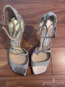 Sansales Azia couleur platine de Jimmy Choo, pointire 38 : un intemporel ;o) Référence 6357.
