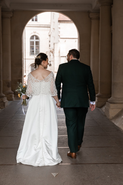 Un grand merci à Alexandra ! Elle est très arrangeante et ses doigts de fée font des merveilles ! La robe était parfaitement ajustée ! Je l’ai accessoirisée avec un top en guipure qui a été confectionné par une proche et l’ensemble était sublime. Mille mercis