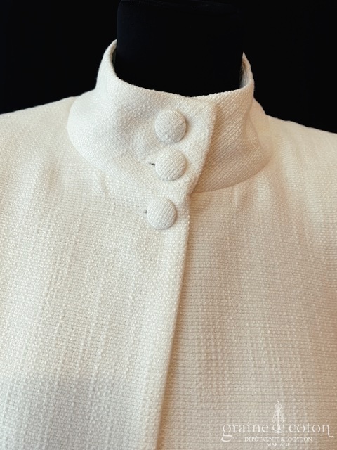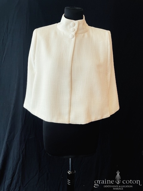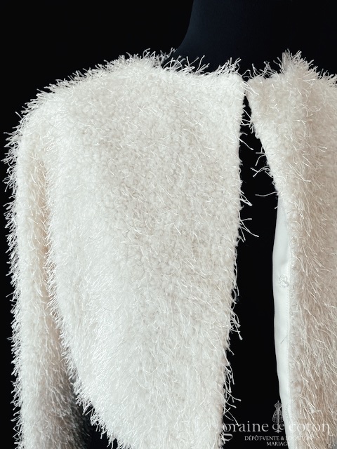 Étole / cape en duvet (plumes) de cygne, se pose autour des épaules. Fermeture par bouton pression. Classe et chaude !