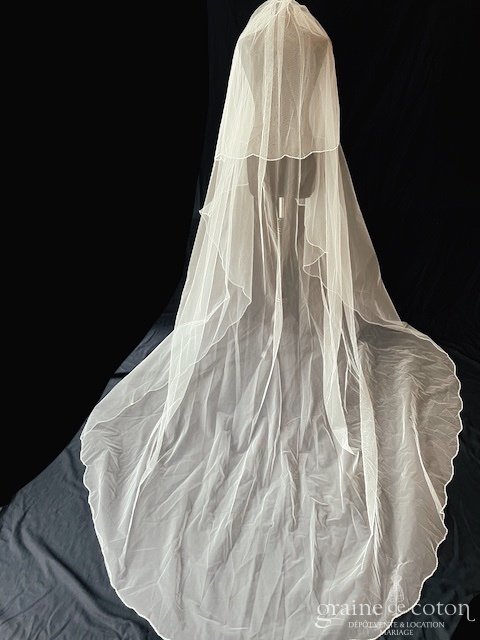 Les reines d’Emilie – Voile long Reina de 250 cm en tulle ivoire clair bordé d’une dentelle de Chantilly