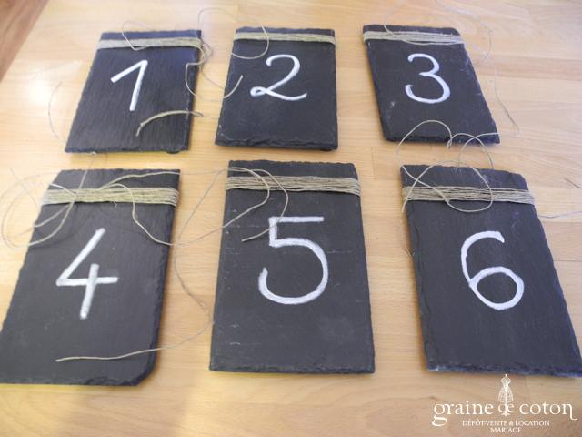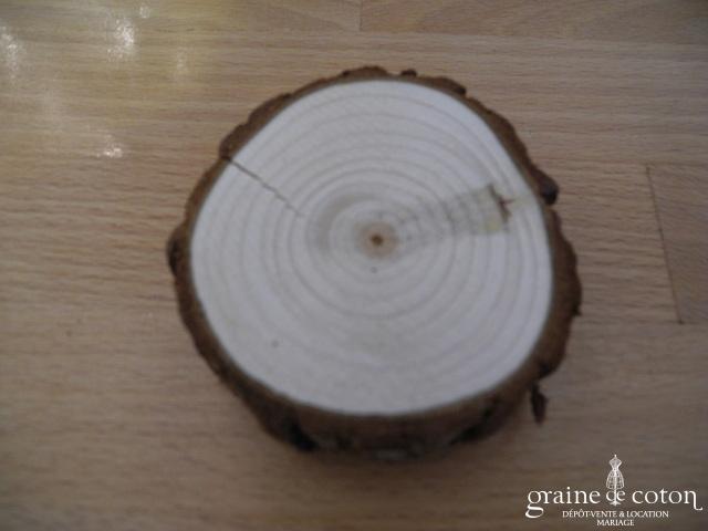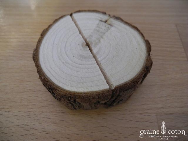 Lot de 5 marques places rondin avec fente sur une face pour y glisser l’étiquette nominative. Diamètre moyen : 6 cm, hauteur moyenne : 2 cm. Idéaux pour une décoration …
