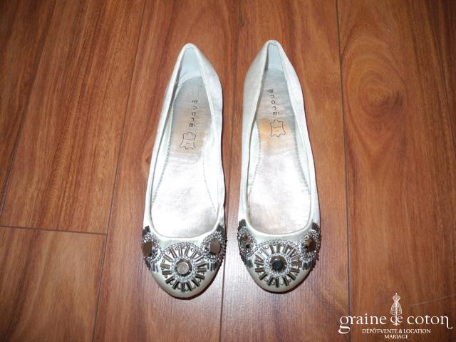 Escarpins avec talons compensés de 4,5 cm, couleur ivoire et façon babies. Très confortables.