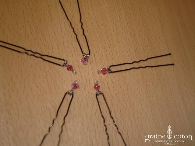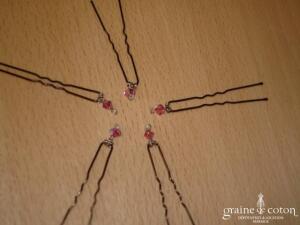 Pinces à chignon argent et toupies Swarovski roses – Lot de 5
