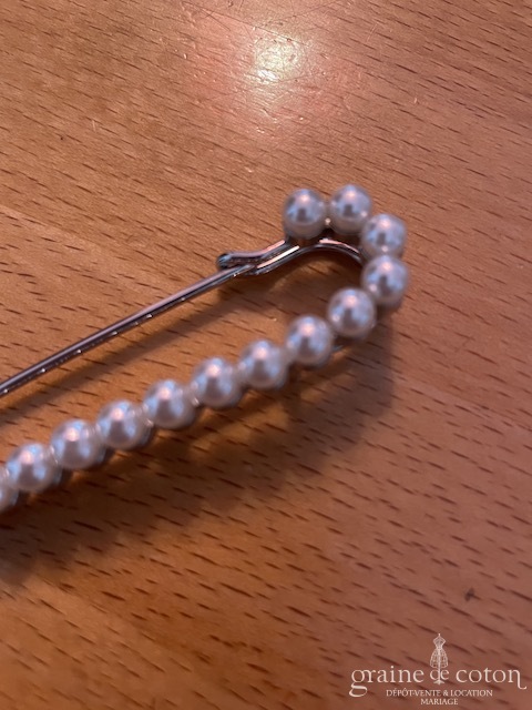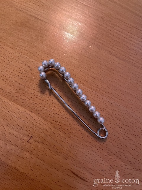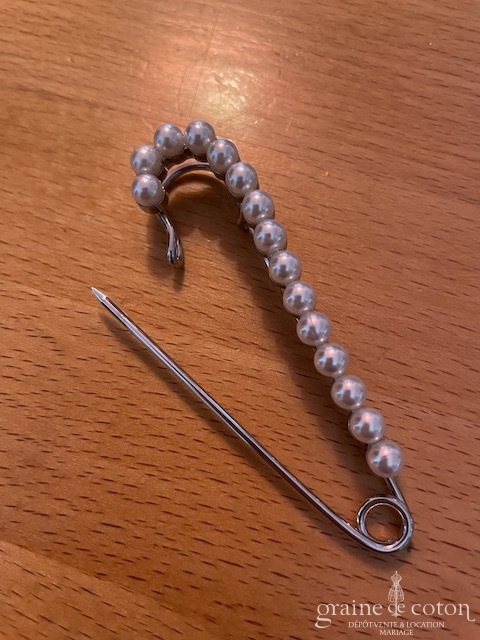 Attache traîne épingle à nourrice perlée : à utiliser sur des tissus épais pour relever la traîne.