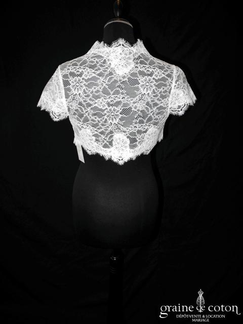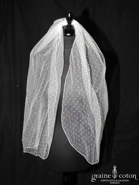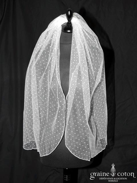 Voile court en tulle plumetis blanc sans rabat avant. Monté sur peigne.