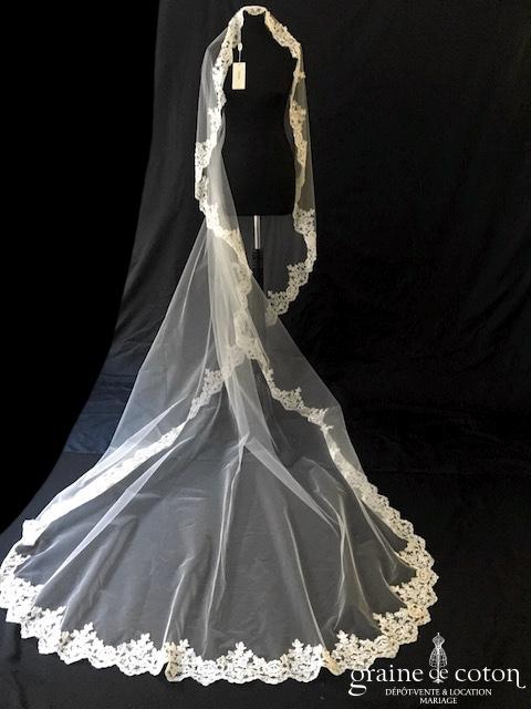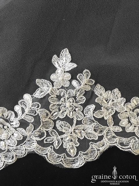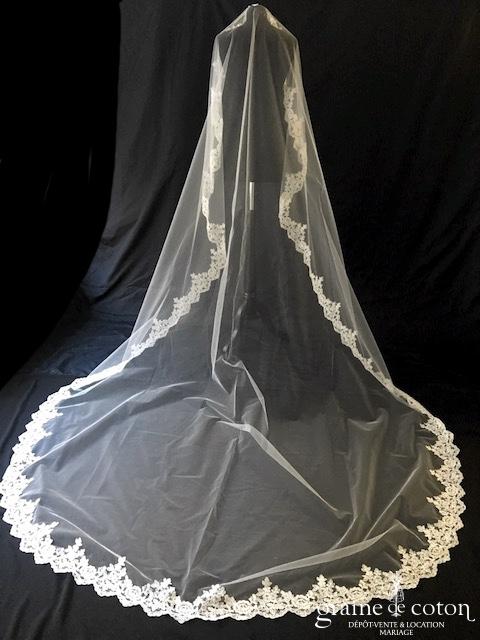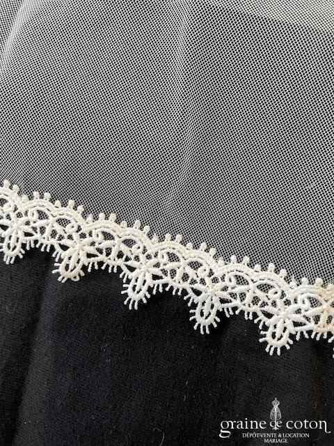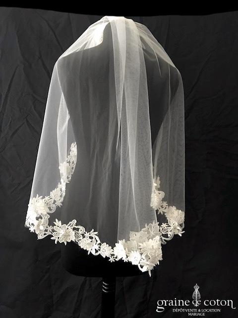 Voile court en tulle plumetis ivoire sans rabat avant. Monté sur peigne.