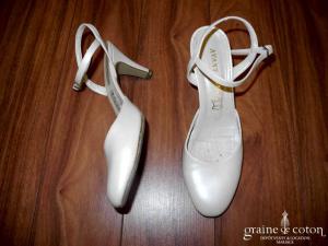 Escarpins à bouts pointus en cuir blanc, lanières tour de cheville. Talons de 9 cm.