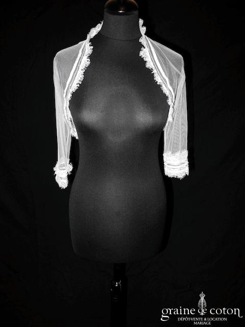 Voile court en tulle ivoire bordé de perles. Non monté sur peigne : peut donc se porter avec ou sans rabat.
