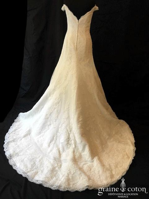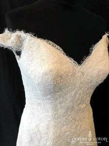 Dépôt de deux nouvelles robes pour commencer la semaine : de nombreuses vont suivre ;o) – le modèle « Batala » de Pronovias, tout en dentelle avec petites manches sur les épaules. …