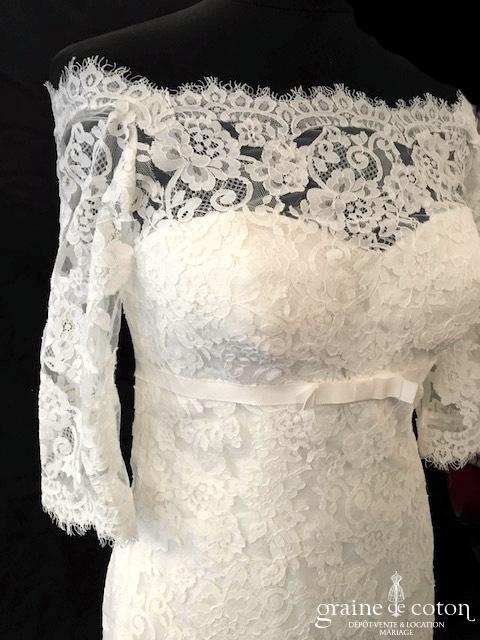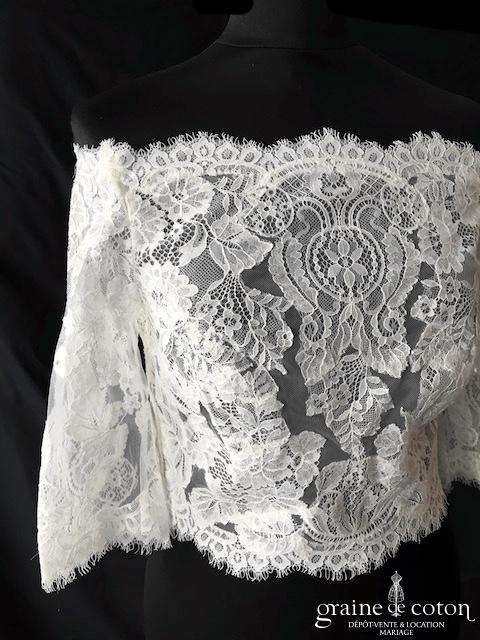 Boléro en fine dentelle de Chantilly ivoire à manches longues et encolure bateau