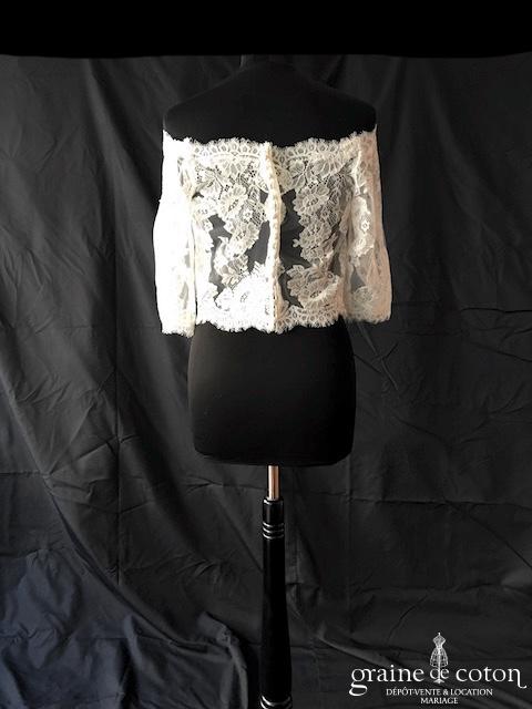 Boléro à fermer dans le dos en fine dentelle ivoire et petites manches