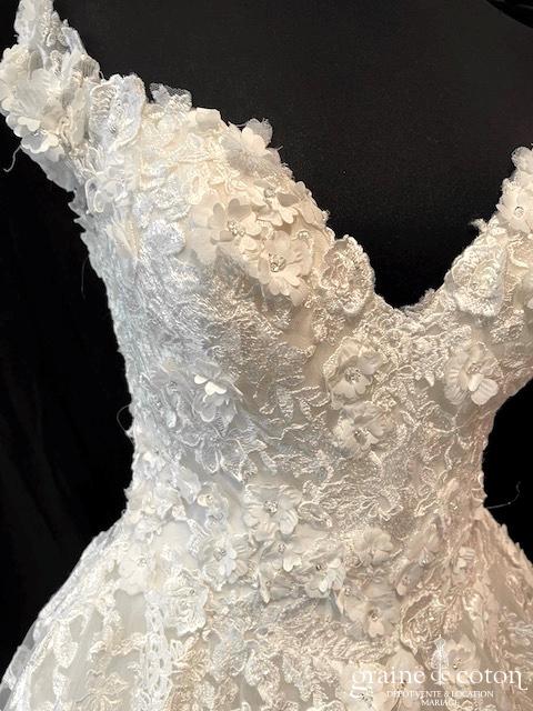 Boléro en guipure brodée ivoire sans manches et encolure bateau